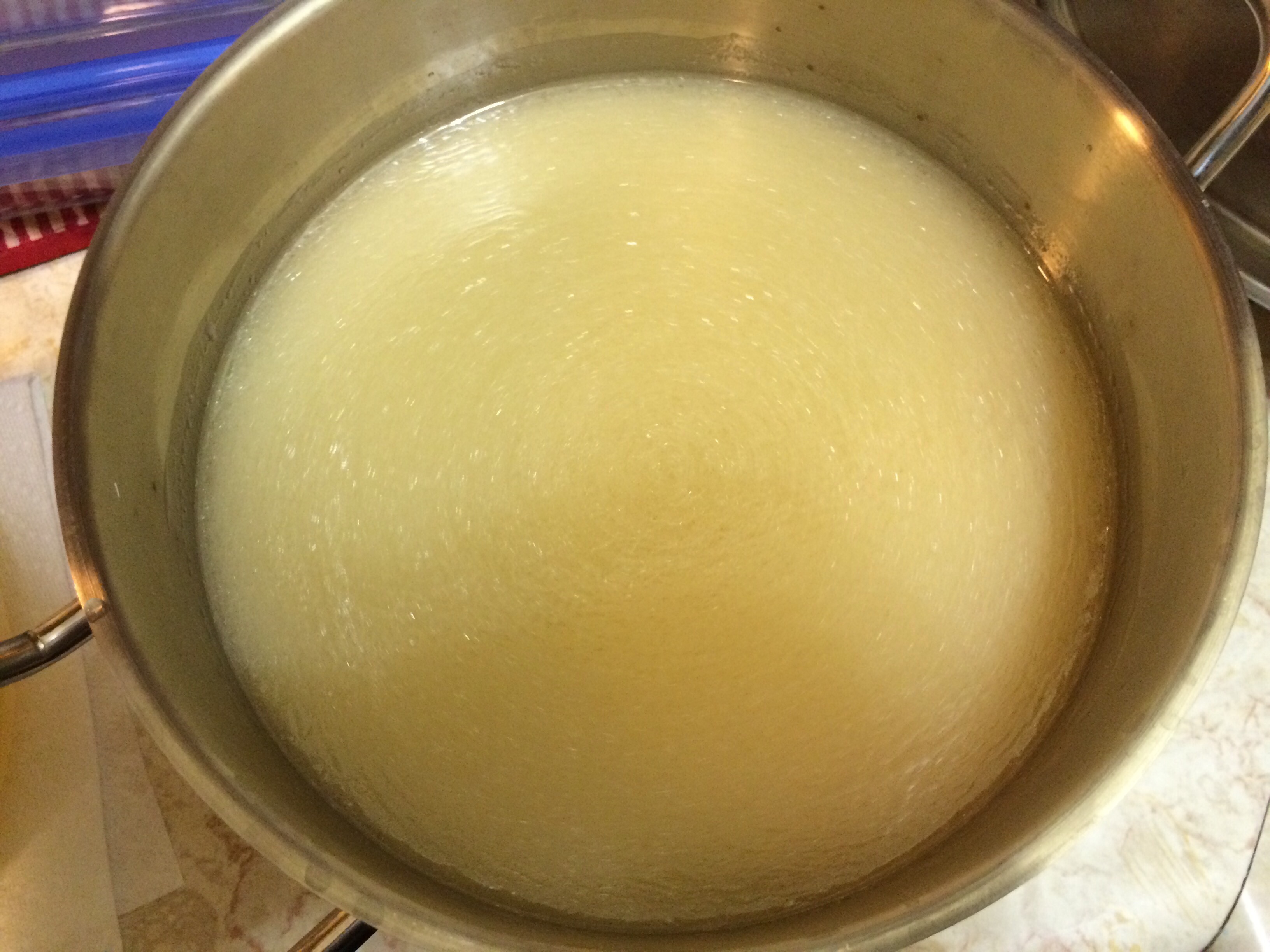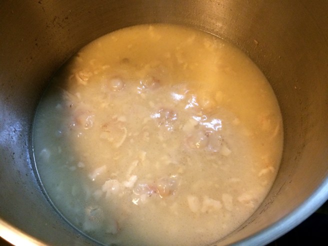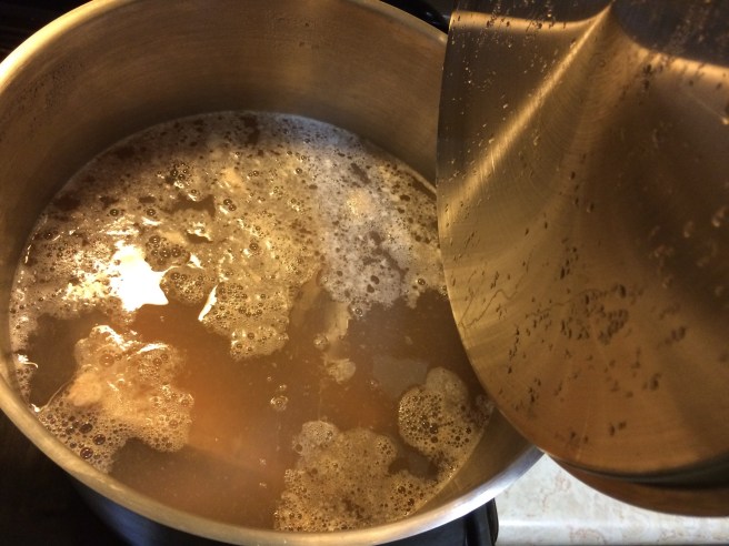 11pm — 14.5 hours into the (still covered) long boil, .5 hrs before calling it a night