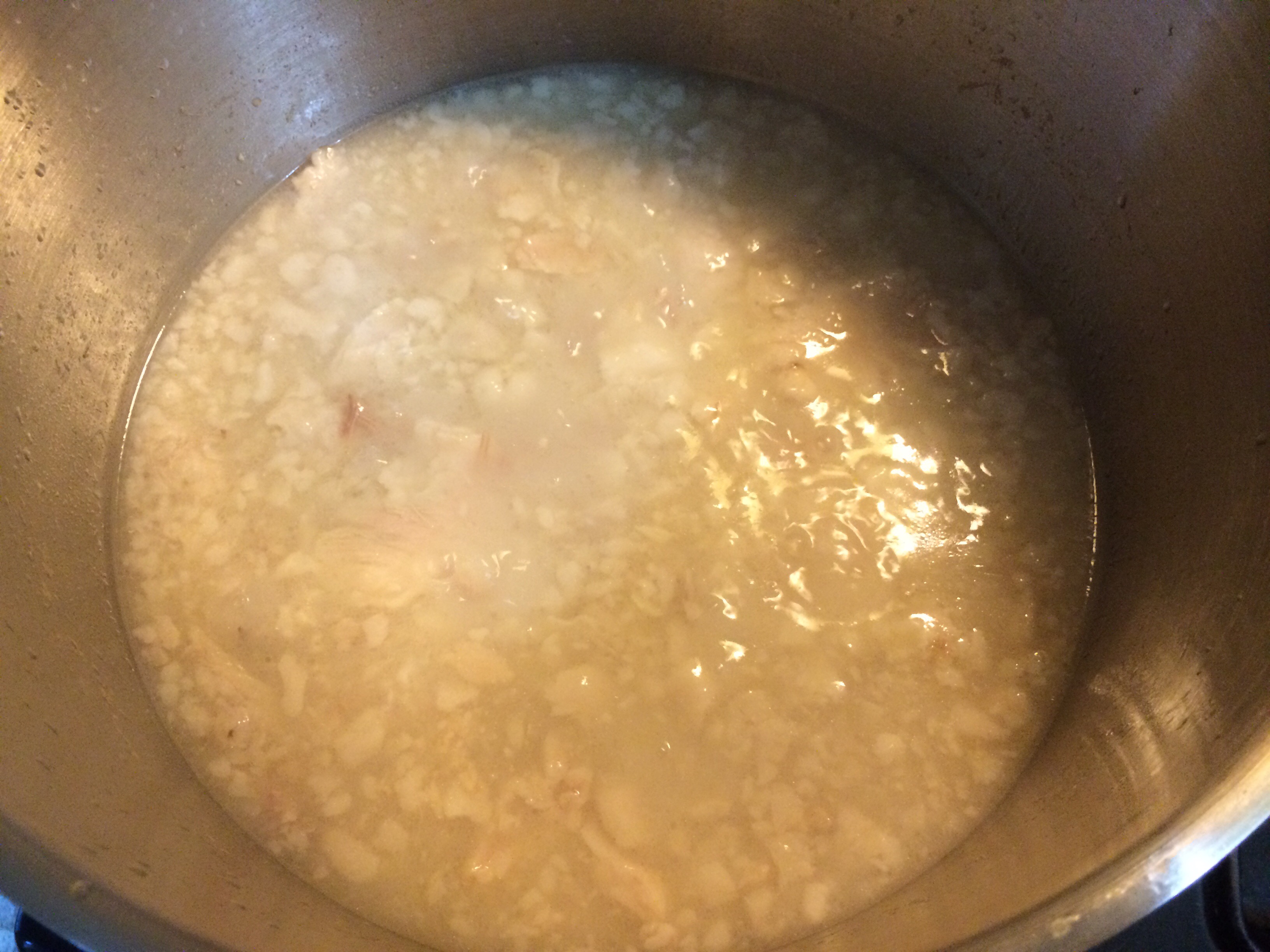 8:30am — Starting the long-haul boil, with ~1 lb fatback added