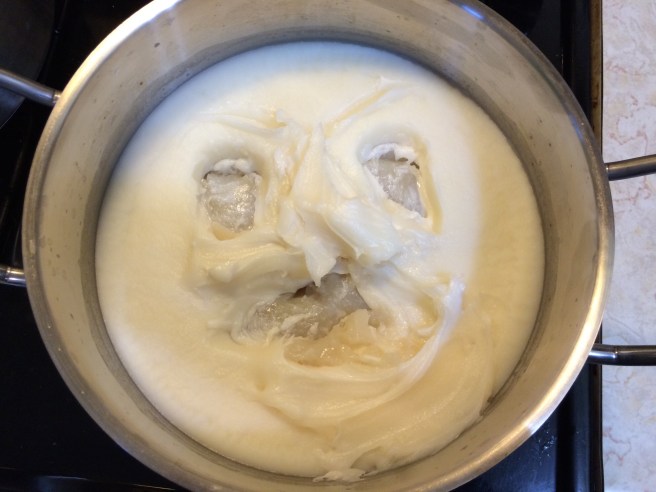 After refrigeration, so much lard. No amount of agitation would help this issue, so we resorted to skimming, and salvaged the spoils for another use.