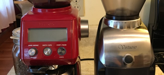 The Hario Skerton was a vast improvement over the Krups. The grinds are much more consistently sized, but man can the thirty minutes of hand-grinding put a damper on an otherwise lazy Sunday morning. It took two years of (un)happily hand-grinding before we decided to upgrade again. Continue reading